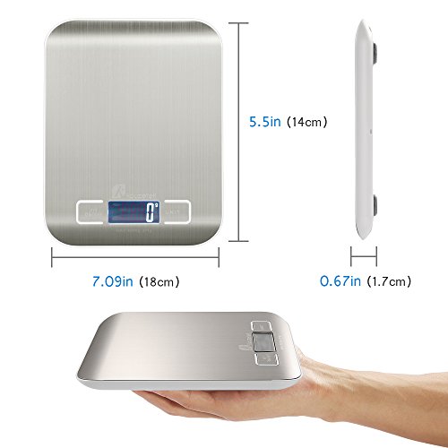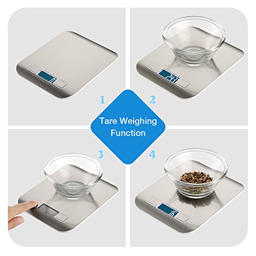 Digital Kitchen Scale, Houzetek Multifunction Food Scale,11 lb 5 kg Stainless Steel Weight Scale with LCD Display(Batteries included, Silver)