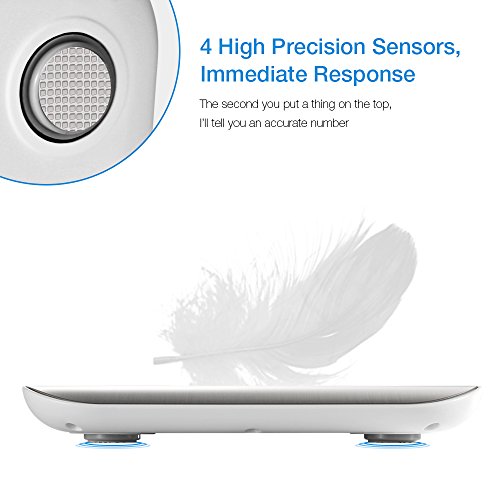 - Ultra-thin Modern Design: 1.7cm ultra-thin FDA proved stainless steel plate makes the scale durable,stylish, lightweight, and easy to store, anti-fingerprint technology for easy cleaning and maintenance. 4 x 2cm large LCD display with blue backlight show numbers clearly even at night.
