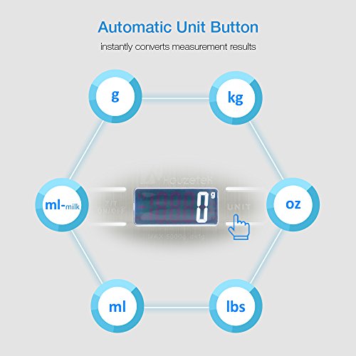 - User-Friendly: Instantly converts measurement results between grams ( g ), kilograms ( kg ), ounces ( oz ), pounds ( lbs ), milliliter ( ml ) and ml of milk ( ml-milk ) displays precise results on the LCD screen. Volume Measurement Supported, violet backlit display and low battery indication.