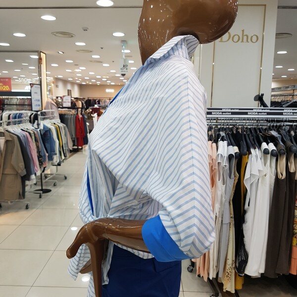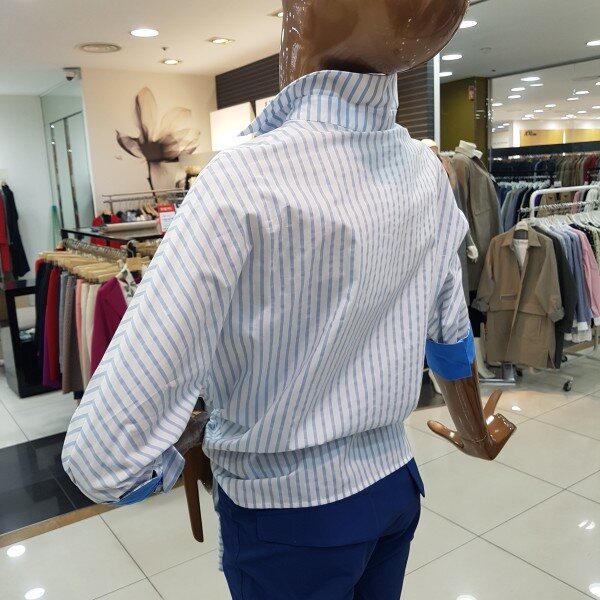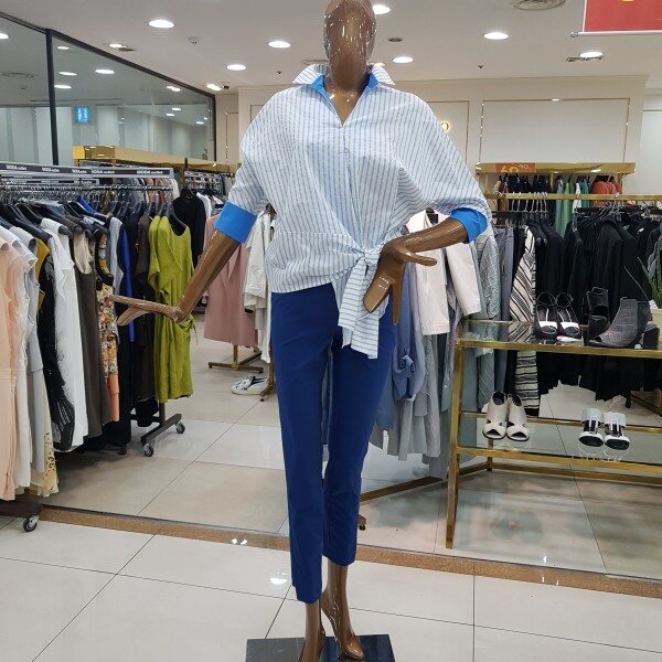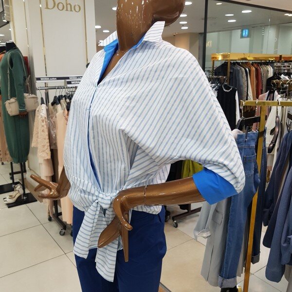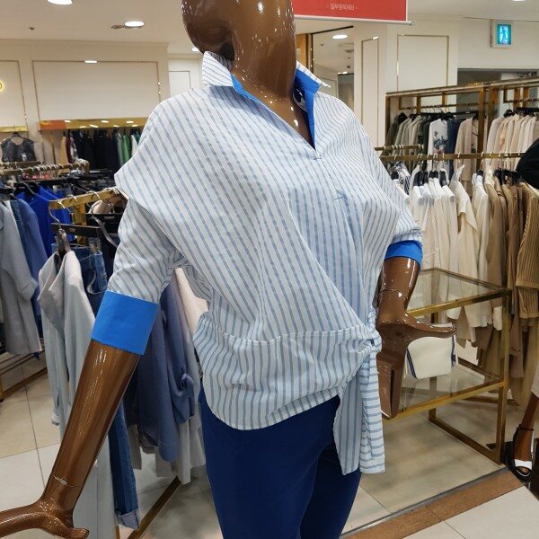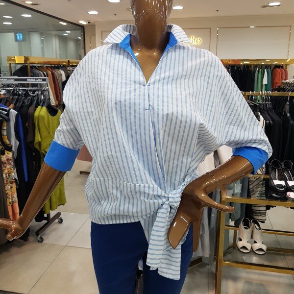 셔츠형 블라우스로 허리에 리본으로 포인트를 준 스타일입니다.