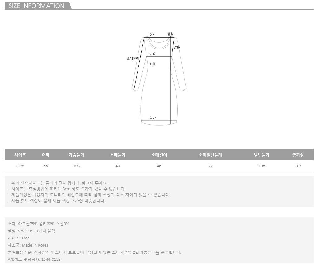 모델의 착용 컬러는 아이보리 입니다.