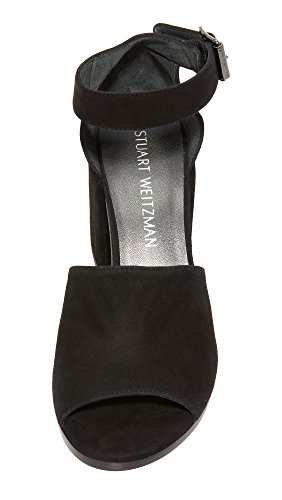 Product DescriptionA covered block heel gives these suede Stuart Weitzman sandals a substantial profile. Buckled ankle strap. Leather sole.0