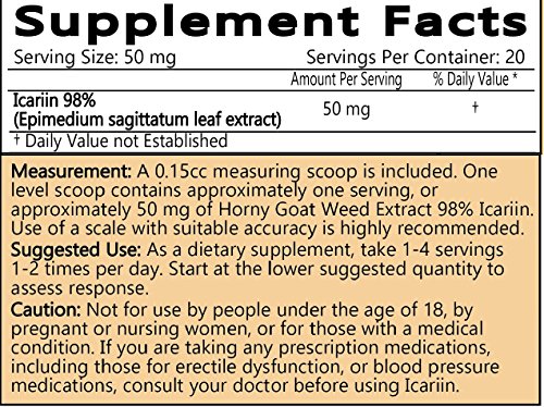Icariin is a phytochemical extracted from an herb found primarily in China known as Horny Goat Weed (Epimedium or Yin Yang Hou). Horny Goat Weed has a very long history of use in traditional medicine for sexual health. Icariin acts as a powerful aphrodisiac for both men and women.