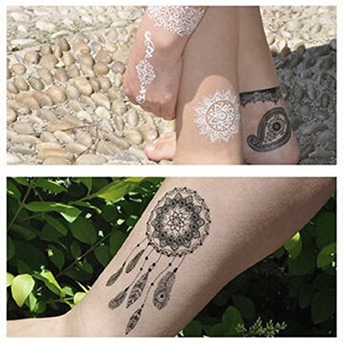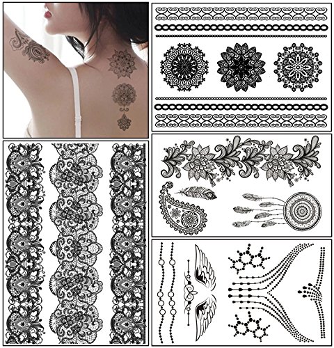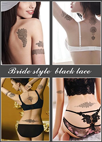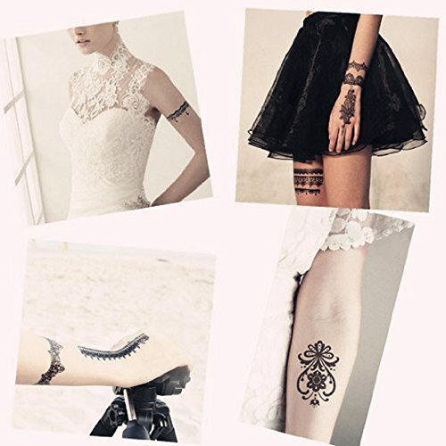 Temporary Tattoo Stickers, Glamorstar Fashion Black Lace 4 Different Sheets Waterproof Body Art Tattoo Sticker for Women, Teens & Girls