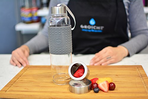 GROSCHE Marino 550ml/18.6oz Water and Tea Travel Infuser, Glass and Stainless Steel Sport Water Bottle with Infuser; Tea Tumbler , Cold Brew Coffee Maker, and Water Bottle