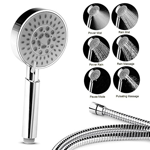 6 Function Includes: Power Mist, Power Rain, Rain Massage, Rain Mist, Pulsating Massage, Pause Mode for brass hand held shower head set.
