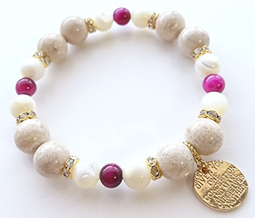 -. Feature : 【ストーンのsize】リバーストーン10ミリ ピンクタイガーアイ6ミリ マザーオブパール8ミリ / 【ブレスレッドのsize】内径15.5~16cm / 伸縮性のあるオペロンゴムで繋いでおります。 / オリジナル巾着袋付きなのでプレゼントにも最適