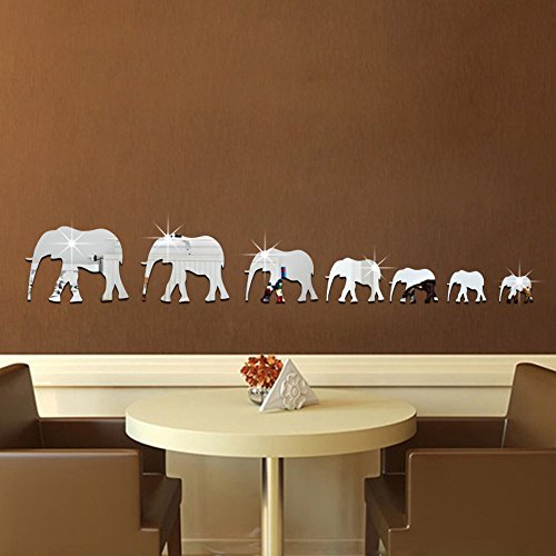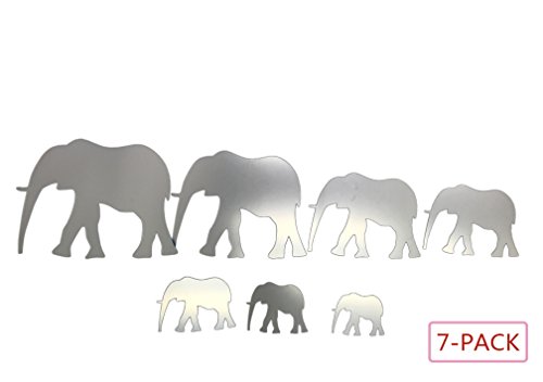 - set of 7 elephant decals could fully spark your artistic imagination and create a unique style for your preference. The biggest elephant size: 21x15.5cm. The smallest size: 7x5.5cm.