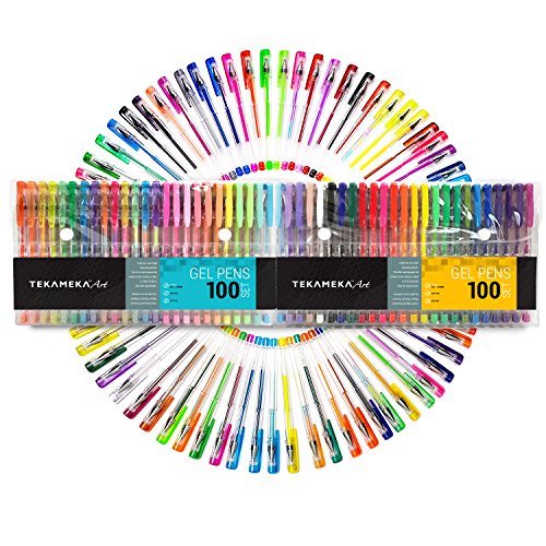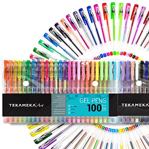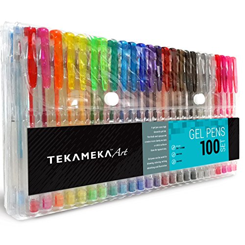 Tekameka Art Gel Pens Set 100 Pack Include Carrying Case - Individual Coloring Drawing Pen Markers for Adult Coloring Books
