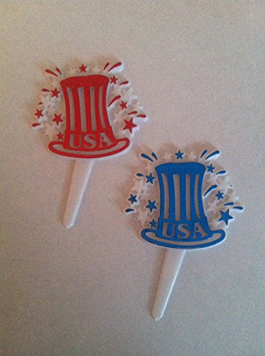 Patriotic Fourth of July USA Uncle Sam Hat Fireworks Decorative Cake Topper Cupcake Picks 12 count