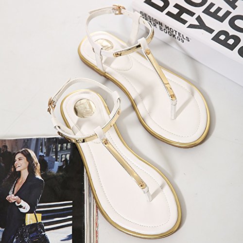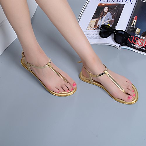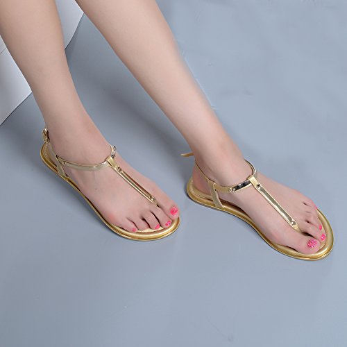 Binding : Apparel Product Description 1.T-straps flip flops summer toe post ring Shoes 2.Cushioned footbed for long time wear. 3.Adjustable ankle strap. 4.Pouches thong avoid scraping foot Outer Material: Synthetic Heel Type: Flats Shoe Width: Regular Heel Height: Flat (less than 0.25") Shoe Type: Stunning Flat Sparkling Summer Sandals The Summer flat sandals will put a little sparkle shine into your everyday even wedding.