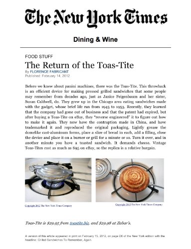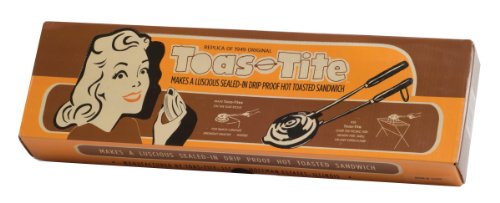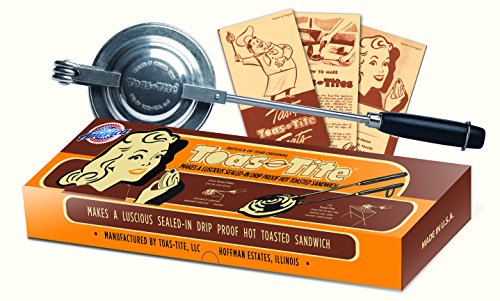 Studio : Harold Import Company, Inc. Publisher : Harold Import Company, Inc. Binding : Kitchen Product Description The Toas-Tite Grill Sandwich maker makes a luscious, juicy, savory sandwich, hot and toasted while sealing the delicious filling inside the hot golden toast. The Toas-Tite is packaged in a retro box along with reprints of the original instruction and recipe booklets. Sandwich maker can be used over gas or electric stove, electric hot plate, outdoor grill, fireplace or picnic bonfire. Quickly turns two ordinary slices of bread and your favorite sandwich filling into a hot, sealed toasted sandwich. Before first use, aluminum grids should be cured by wiping vegetable oil over the inside surface of each grid. Next, preheat the Toas-Tite grill with a moderate heat to cure?now the fun can begin. It recalls a nostalgic era for many baby boomers and their parents. 0