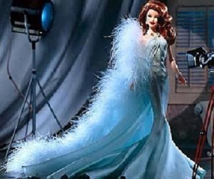 - Includes: doll, gown, jewelry, marabou stole, shoes, doll stand