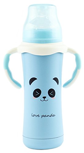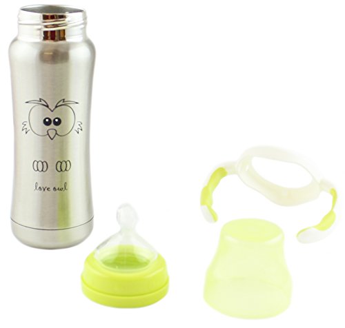 With the MoomooBaby Baby Bottles you can stop worrying about chemicals toxins or strange flavors leaching into your baby's formula or juice. Constructed from the high quality stainless steel, this baby bottle is virtually unbreakable. Includes an easy-to-hold handle, but bottle itself is ergonomically contoured so you can also use without the handle.Feature