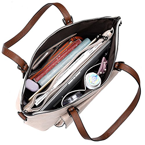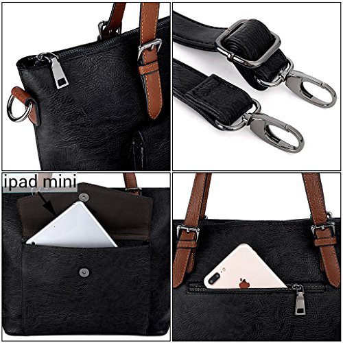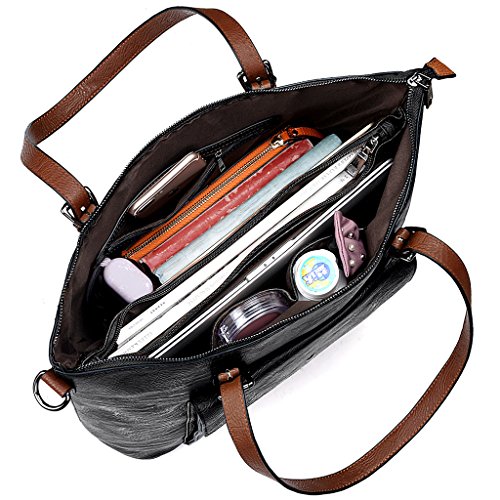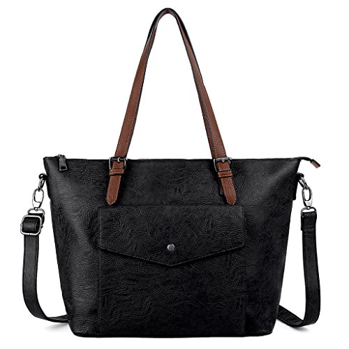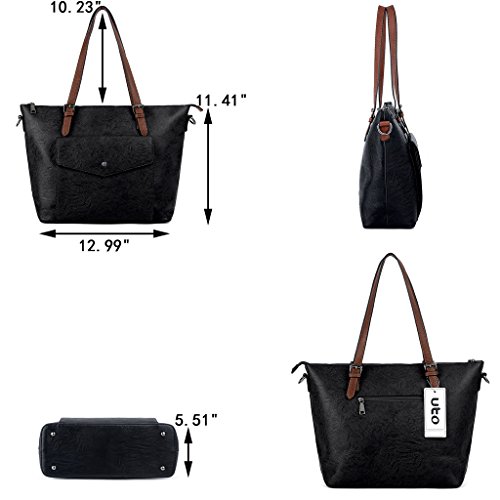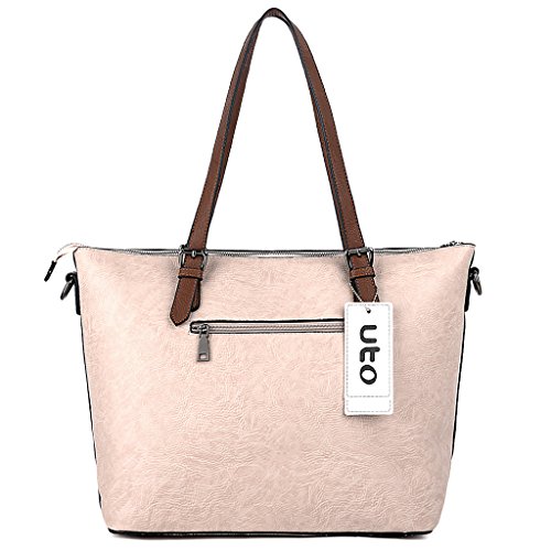 -. Brand : UTO -. Department : womens -. Feature : HIGH QUALITY - Soft synthetic vegan leather with tungsten steel color hardware. Top zipper closure, detailed streamlined stiching and full-lined coffee fabric lining. 1 adjustable shoulder strap and 2 top loop handles. / LARGE CAPACITY - Interior: 2 large compartments divided by a center zipper pocket. 2 slip side pockets and 1 side zipper pocket. Exterior: 1 large front magnetic pocket and 1 back zipper pocket. / EXTREMELY PRACTICAL - Comfortably holds an 13.3" Macbook, tablet and laptop 14" and under. Internal Pockets can hold your smartphone, cosmetic, hair band and other tiny items. Perfect for any occasion. / MULTIPURPOSE - Handheld / Single Shoulder Carried by 2 adjustable Handles. Handle drop is wide enough to wear on your shoulder comfortably. Crossbody Carried by 1 long adjustable shoulder strap. / DIMENSIONS - 12.99"L x 5.51"W x 11.41"H. Weight: 2.38 pounds. Handle drop: 10.23". Shoulder Strap: 47.71". -. ProductGroup : Shoes -. ProductTypeName : HANDBAG -. Title : UTO Women Tote Bag PU Washed Leather Front Pocket Ladies Purse Shoulder Bag