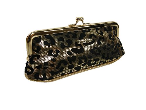 New Juicy Couture Logo Cosmetics Bag Case Purse Black Gold Leopard Kisslock Snap