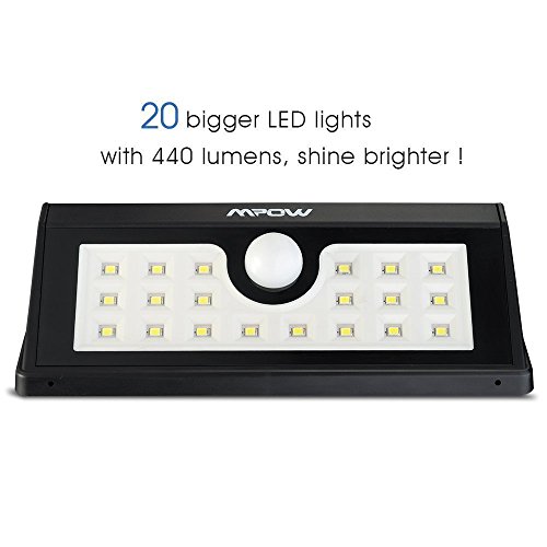 20 LED Design offers super bright lighting for a strong illumination up to 440 lumens . Far more brighter to cover a wide area than other similar solar lights in the market.And what's more, we increase the battery capacity from 1200mAh to 1500mAh, thus getting some two more hours' duration.