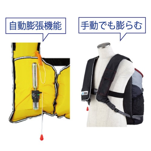 ●自動膨張機能…"ガスボンベの中身は二酸化炭素なので安全"