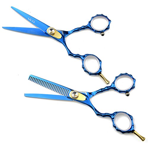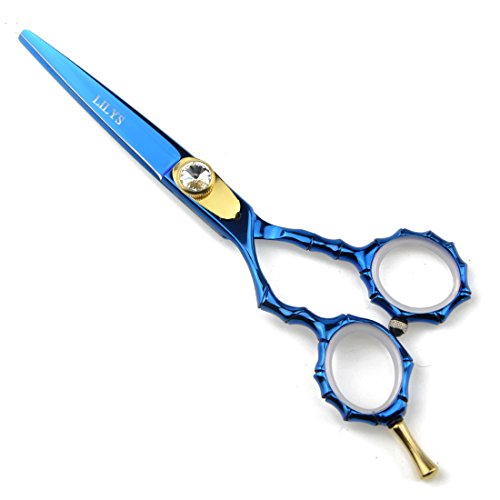 LILYS PET HIGH-END SERIES LEFT-HANDED 5.5" 440C Stainless Steel Professional Barber Razor Edge Hairdressing Scissors Titanium Coated (Blue)