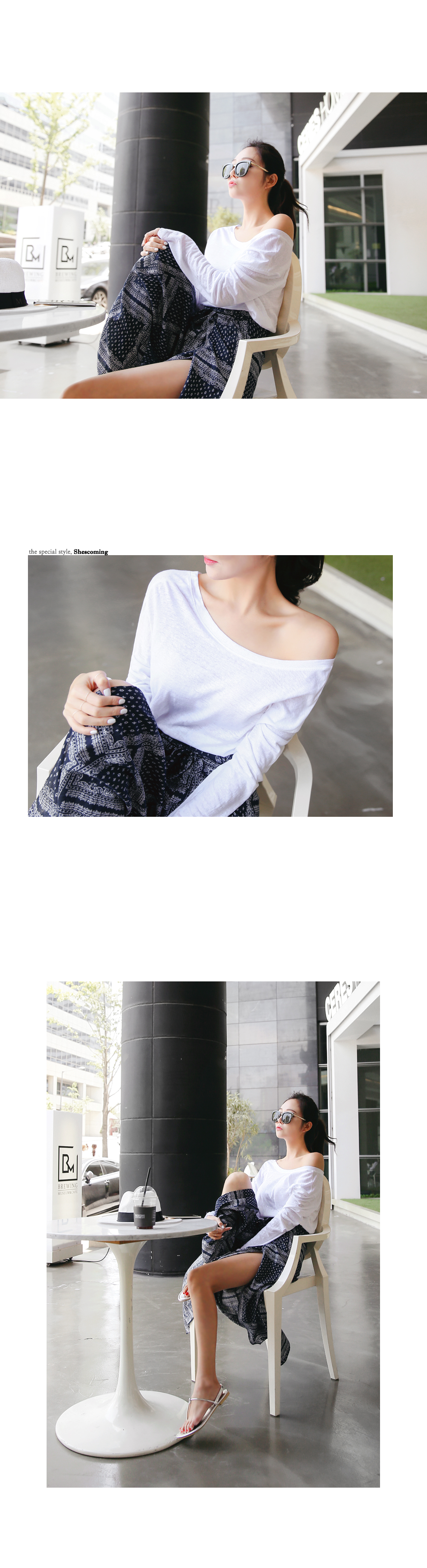 와이드한 네크라인이 유동적으로 디자인되어