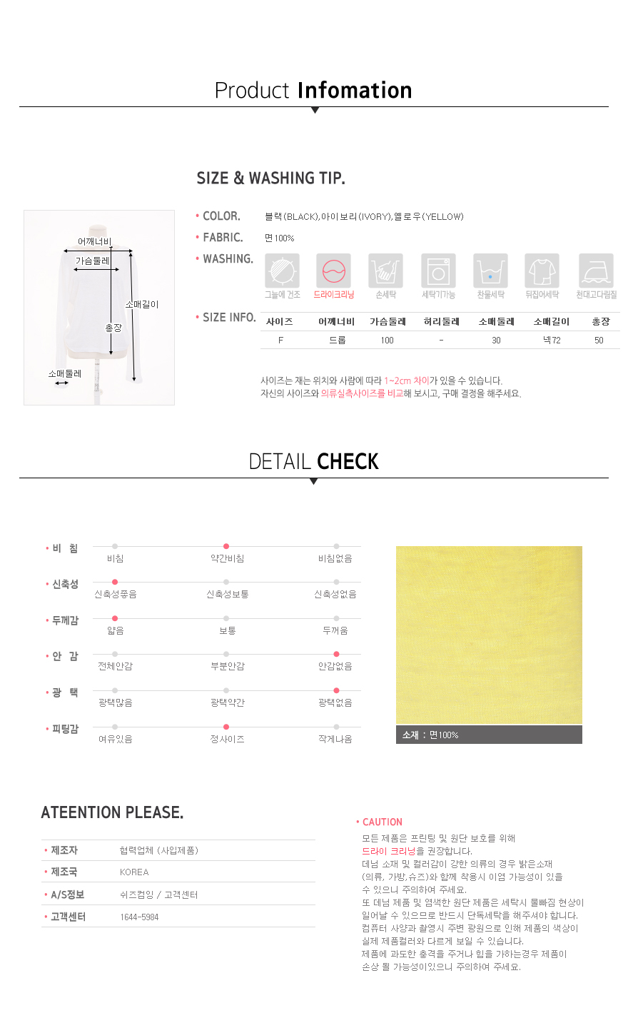 가볍고 얇은 원단감으로 시스루한 느낌과