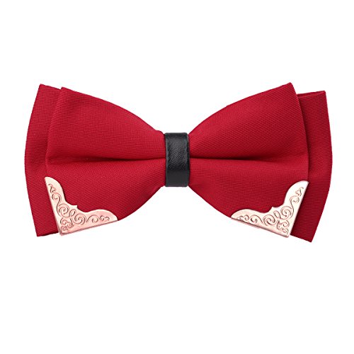 -. Feature : Material: Polyester Silk+PU Leather+Gold Metal / Item Size: 12(W)*6(H)cm / Package contains: 1*bow tie / Perfect Accessory for men to any wedding and occasion parties / Pre-tie bow ties with adjustable band collar