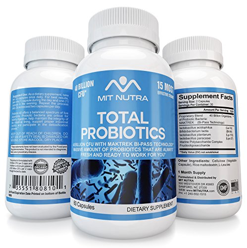 -. Feature : RESULTS OR YOUR MONEY BACK - 120 DAYS UNCONDITIONAL MONEY BACK GUARANTEE: All MIT NUTRA products come with 120 days money back guarantee. We guarantee potency and top quality of all MIT NUTRA products. If for some reason you feel that our product is not a good match with your needs, simply let us know and get 100% full refund - NO QUESTIONS ASKED. MADE IN THE USA - Manufactured in the United States in a GMP Certified And FDA Registered Facility. All MIT NUTRA products are Non-GMO. / HIGH STRENGTH GUT & BRAIN PROBIOTIC: Veggie Capsules containing 11 live strains of good bacteria with 40 Billion CFU's and prebiotic fibre. All natural, non-GMO, free of soy or gluten, no artificial colors. / ADVANCED FORMULA: May help with symp of gas, bloating constipation, indigestion, irregularity, leaky gut, antibiotic induced diarrhea. Helps nutrient absorption for brain & general health. With continued LONG-TERM use, may aid mood and energy levels to alleviate symp of chronic fatigue & stress. May help with immunity, metabolism (maintain healthy weight, sugar levels and cholesterol), combat allergies & lactose intolerance, promote MEN and WOMEN HEALTH (balance yeast growth / candida). / COMPARE OUR PROBIOTICS TO: MIT NUTRA Probiotics, Digestive Health Probiotic, Live Well Pro 45 Probiotics, PB8 Probiotic, VSL 3 Probiotics Capsules, Align Probiotic Digestive Care, Golive Probiotic And Prebiotic, Digestive Advantage Probiotic, Vitacost Probiotic, American Health Probiotic, Insync Natural Probiotic / YOUR SEARCH FOR A QUALITY PROBIOTIC HAS BEEN REWARDED - This product is all natural, non-GMO, contains no soy or gluten, and no artificial colouring, encapsulated in veggie capsules. It is manufactured in the USA, in an FDA-Registered facility, according to GMP (Good Manufacturing Practices). It is third party tested and doctor recommended.