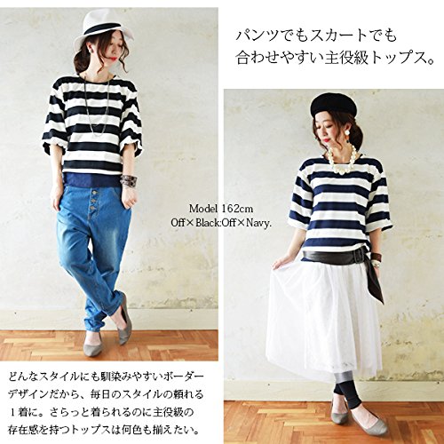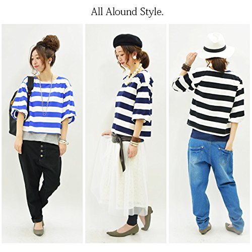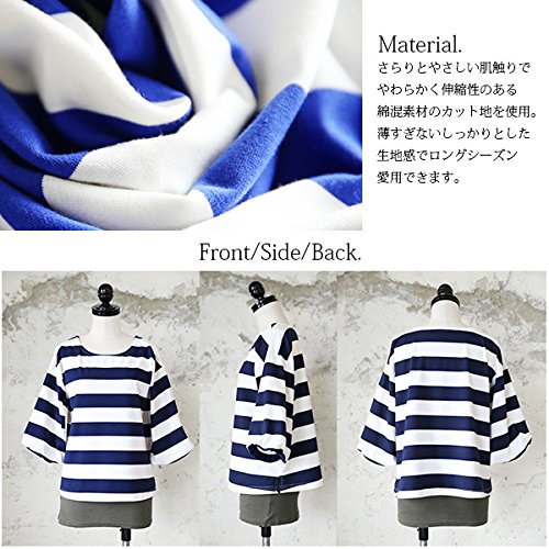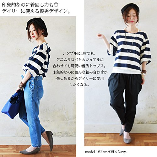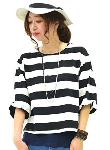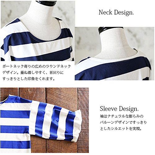 -. Title : [アンドイット] and it_ マリンボーダー バルーンスリーブ カットソー レディース Tシャツ トップス