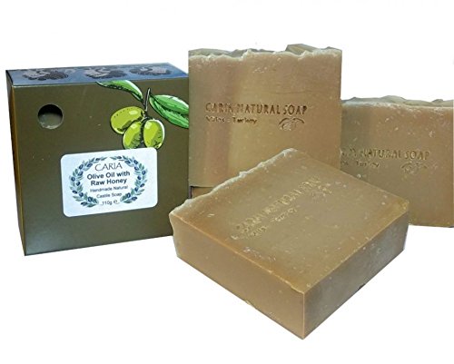 3 x CARIA Olive Oil Soap Bar with Raw Honey (Locally Sourced All Natural ingredients) Traditional Castile Handmade Turkish