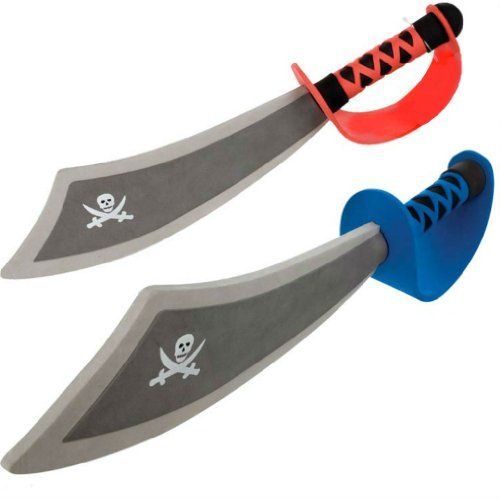 Battling pirates can safely duel with these curved-blade foam swords. Great for pretend play or as an accessory to your pirate costume. You will receive either a red or blue handled scimitar. Total length is 18".