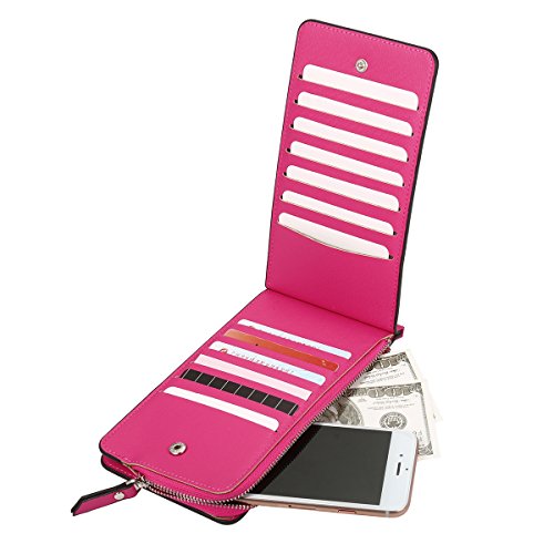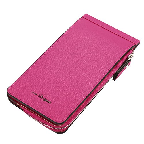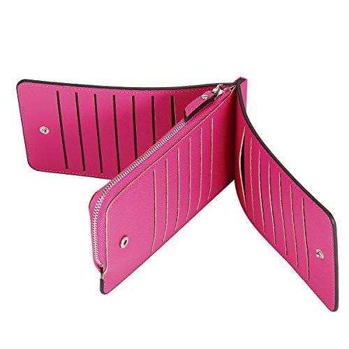 Tezoo Women Microfiber Leather Multi-Card Slots Card Holders Phone Bag Thin Wallet with Zipper Pocket