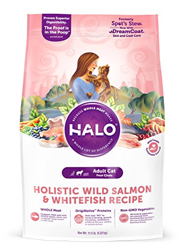 HALO HOLISTIC DRY CAT FOOD, WILD SALMON AND WHITEFISH RECIPE, 11.5 LB BAG OF NATURAL CAT FOOD