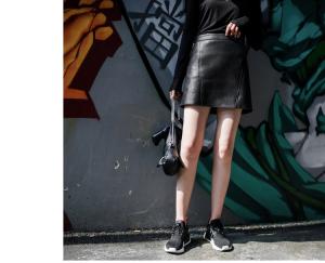 女性らしいAラインシルエットのミニ丈レザースカート♪
