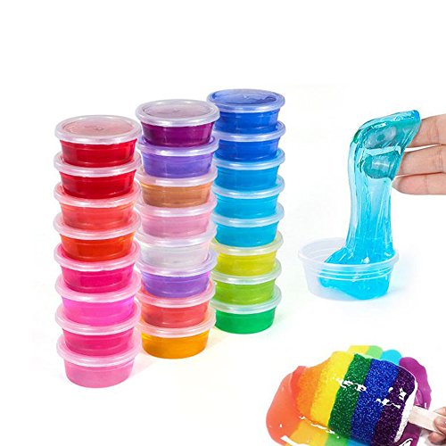 Miraclekoo 24 Pack Clear Crystal Slime Features: Neat package and non stick, won't make a mess when you play with our slime.