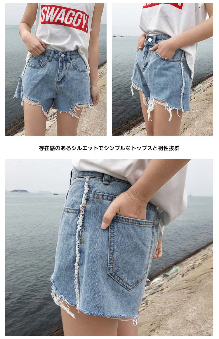 | カットオフデニムがオシャレなショートパンツ切りっぱなし感がルーズなコーデにピッタリ存在感のあるシルエットでシンプルなトップスと相性抜群ショートブーツと合わせたり様々なコーデが楽しめるアイテム | |