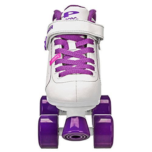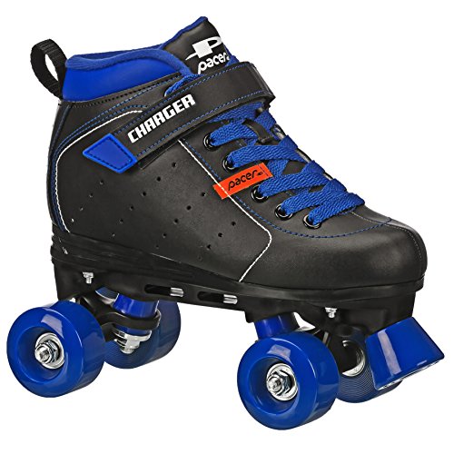 Studio : Pacer Publisher : Pacer Binding : Misc. Product Description The Charger roller skates comeswith Deluxe comfort padding with reinforced ankle support, Pacer reinforced polymer plate with fixed stops and double action trucks, G-Force 608ZB bearings and Pacer polyurethane wheels. This is a great beginner skate for kids and can be used indoors and outdoors. The girl's roller skate comes in white. The boy's roller skate comes in black. 0