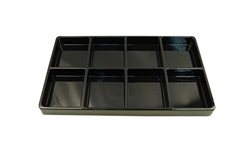 Black plastic stackable tray (8-section) 15 7/8" x 9 1/2" x 1 3/8"h