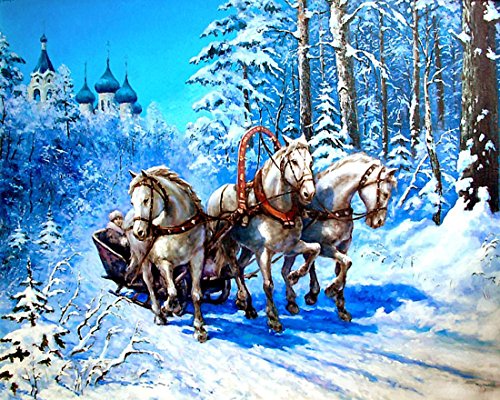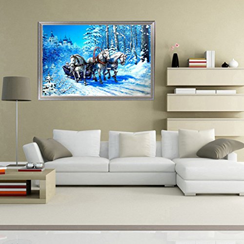 21secret 5D Diamond Diy Painting Full Drill Handmade Three Horses Pulled the Sleigh Cross Stitch Home Decor Embroidery Kit