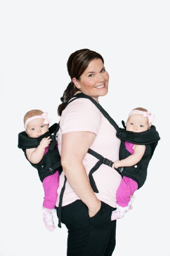 Wearing twins just got easier. Features: Can be worn in 5 different positions. Wider base makes it more comfortable for your twins to sit. Less buckles- making it even easier to put on and take off. Can be worn as a twin or two single carriers. Color: Black Holds two babies (7-25 pounds each) New design makes getting babies in and out easier.Feature