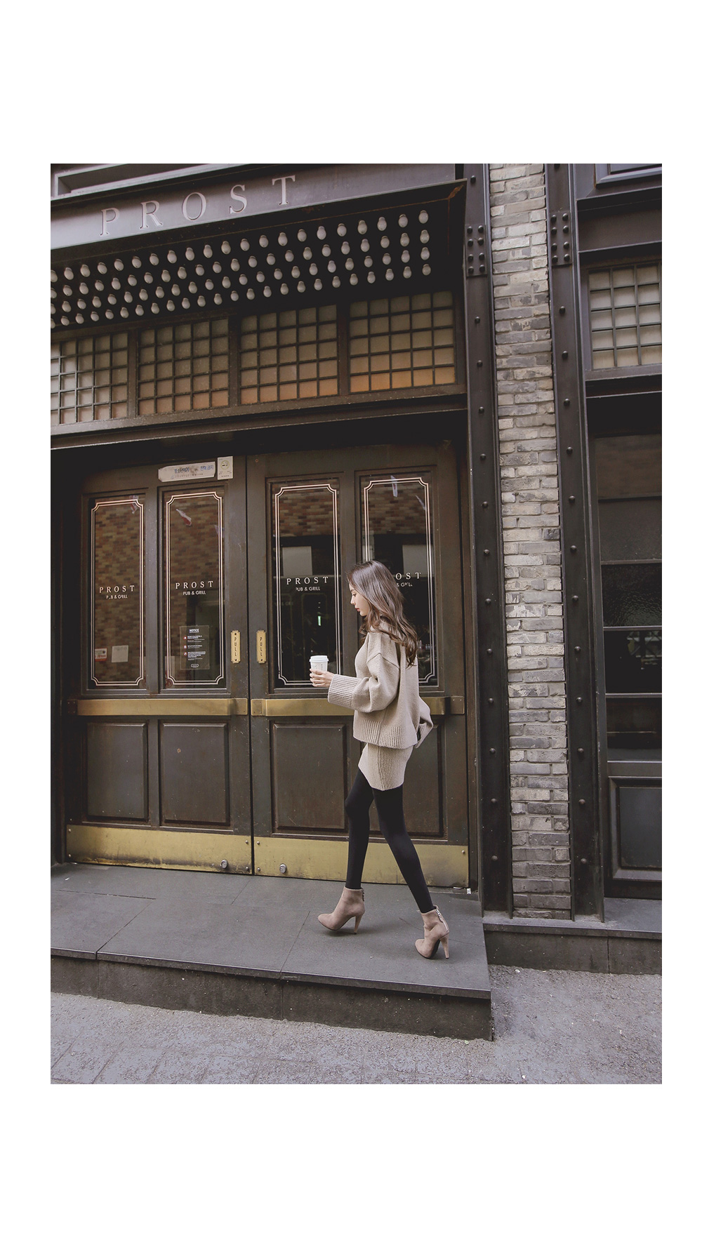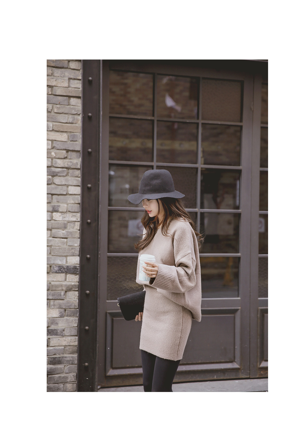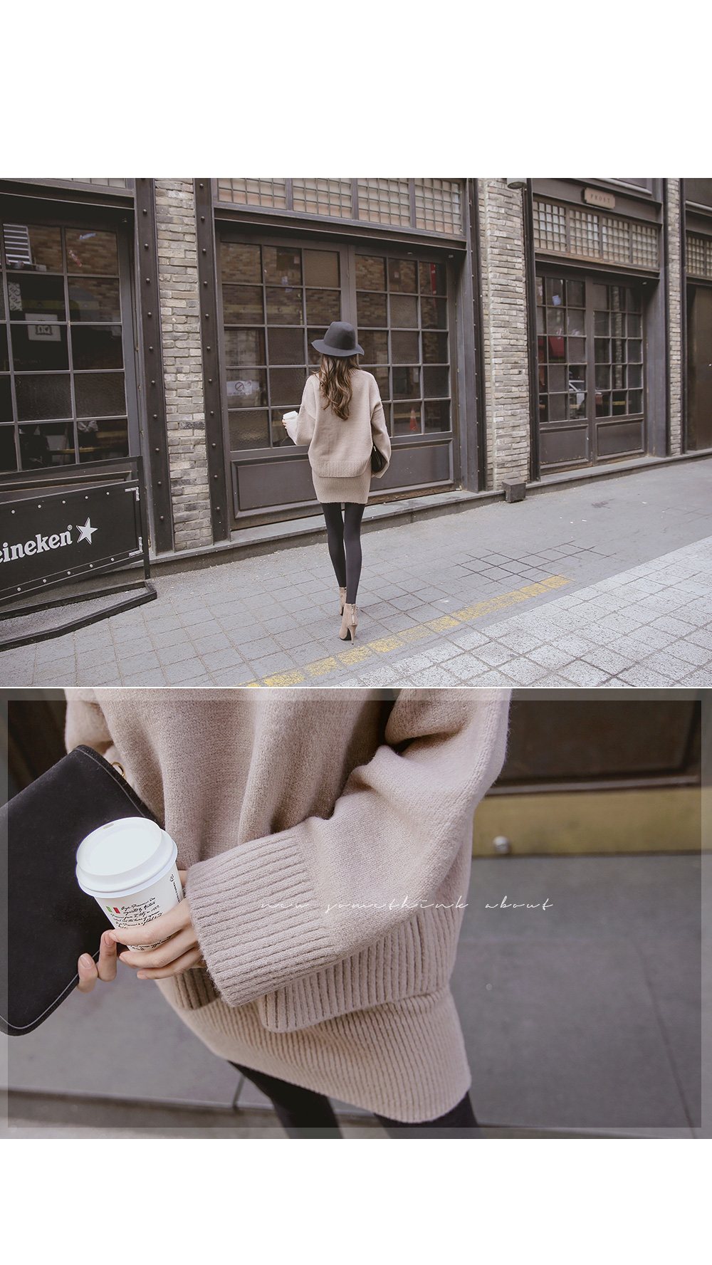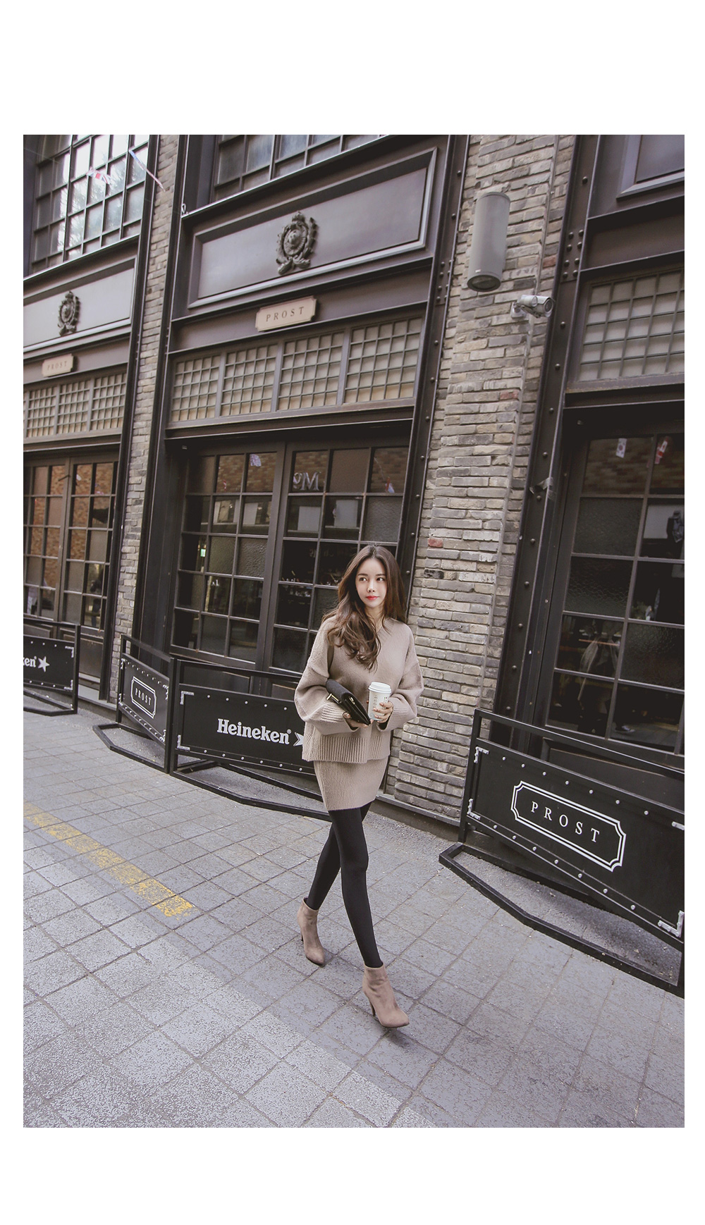 루즈핏 니트와 골지 니트 스커트가 세트로 구성된 아이템을 소개합니다.