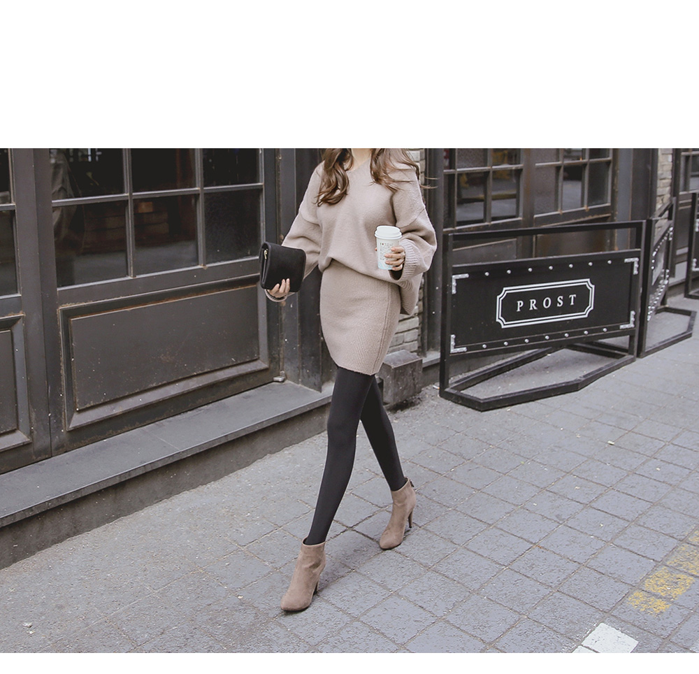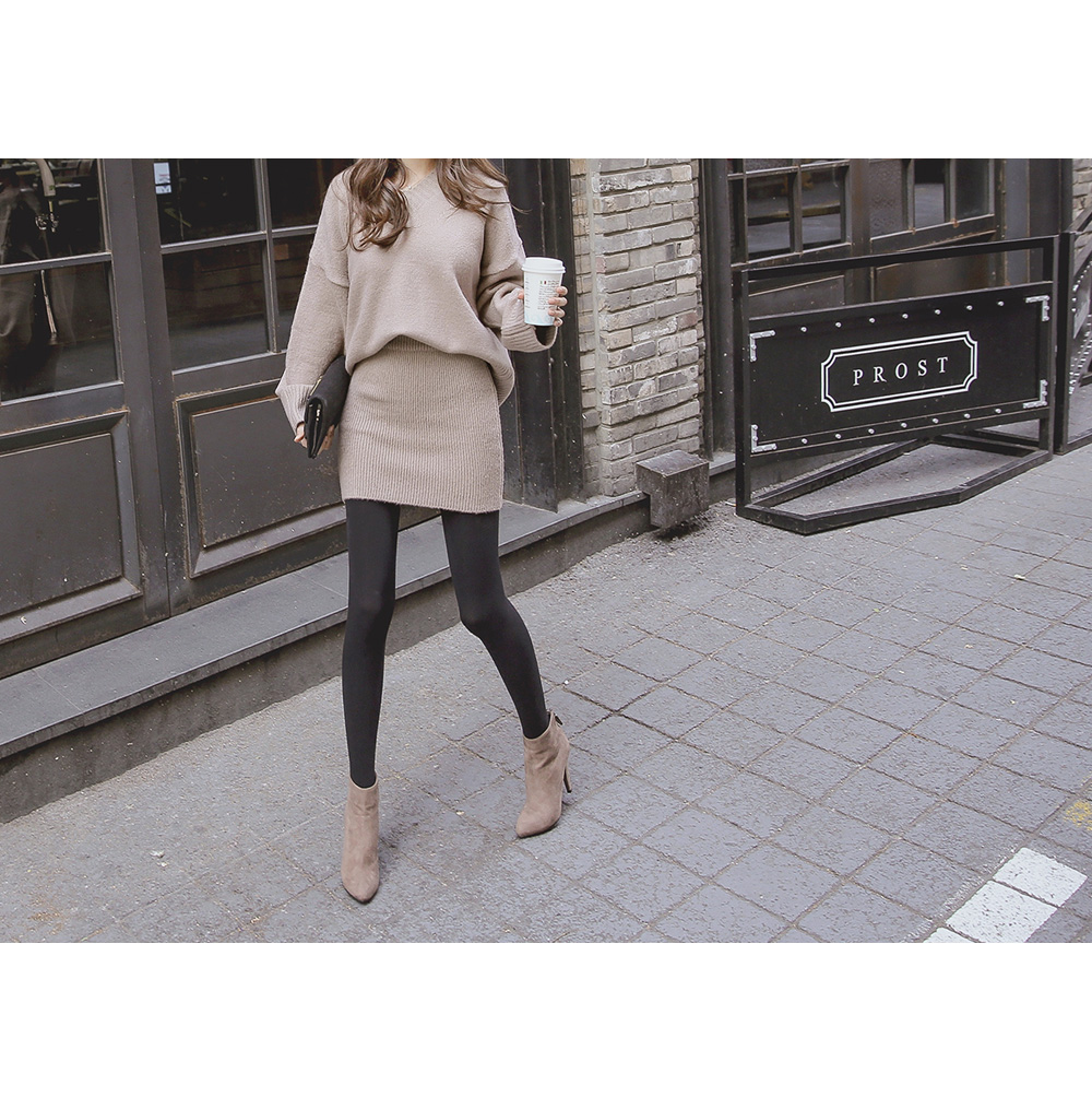 허리 밴딩의 골지니트 스커트가 함께 세트로 구성되어 코디 걱정 없이 편하고 가볍게 입기 좋답니다.
