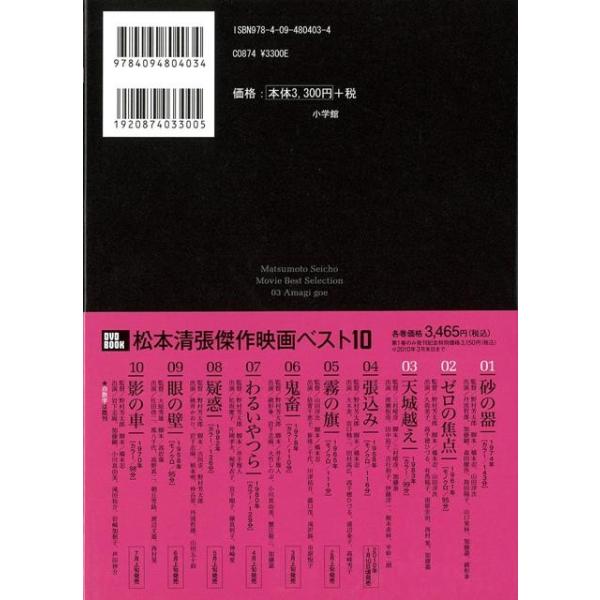 【商品基本情報】 商品名称:天城越え DVD&BOOK 03 著者/出版社:松本清張傑作映画ベスト10/松本清張傑作映画ベスト10 初版発行日:2009/12/13 サイズ:A5判 ページ数:32 ISBN/JAN:9784094804034/4528189581395
