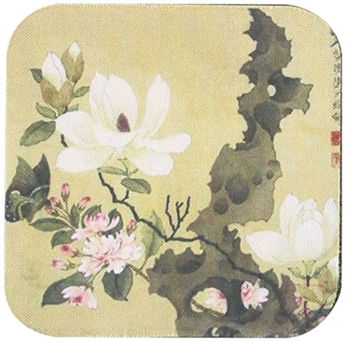3dRose cst_212680_2 Print of Chinese Ink Painting with Floral & Butterfly Soft Coaster (Set of 8)