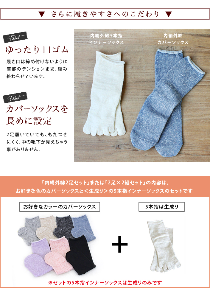セット販売の5本指インナーソックスは【 生成り 】のみです。あらかじめご了承下さい。
