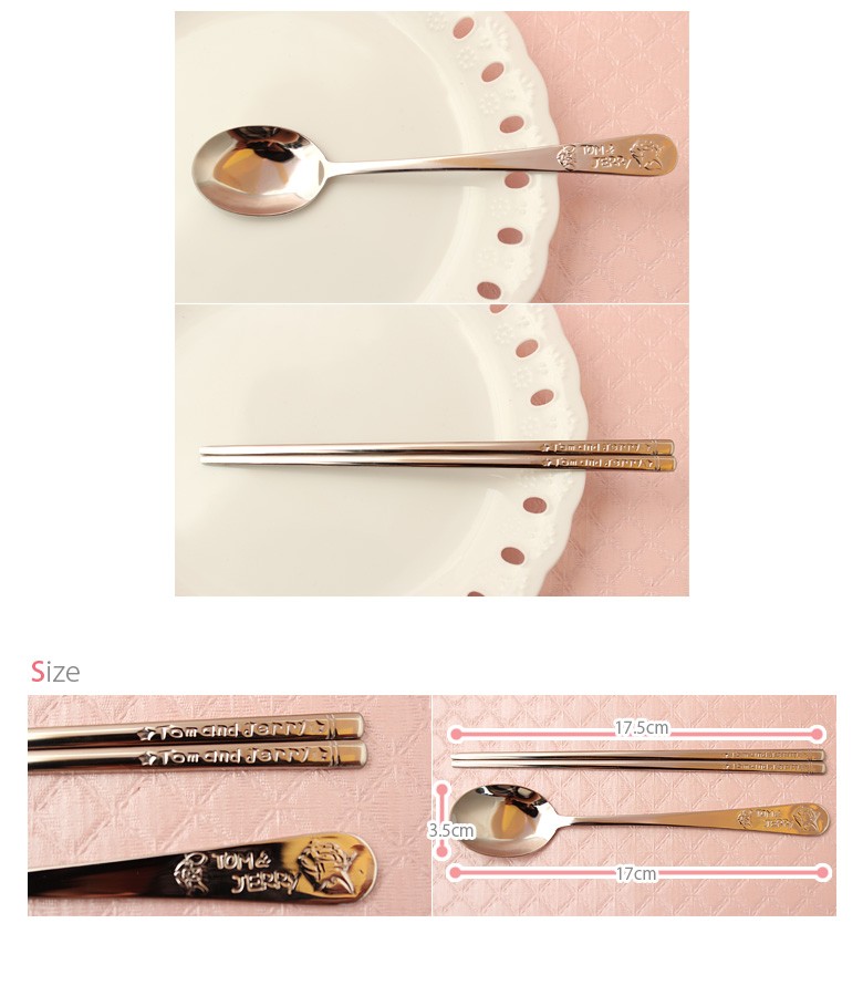 | 韓国ドラマなどでよく見かけるステンレス箸。しかもあのキャラクターのトムとジェリーのステンレスお箸です。おうちでの使用はもちろん、お昼のお弁当にいかがですか?オフィスで注目アップです!!プレゼントも喜ばれます~♪ |