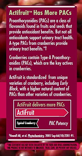 ReleaseDate : 2008-12-09 Studio : Enzymatic Therapy Publisher : Enzymatic Therapy Binding : Health and Beauty Product Description ActiFruit is the first branded whole-cranberry supplement shown to promote bladder and urinary tract health. One capsule has up to 7 times more antioxidants and only 1% of the sugar found in 1 glass of the leading brand of cranberry juice cocktail. It's patented Bio-Shield extended release system delivers nurturing bioactives throughout the day. One capsule daily. 0