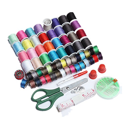 -. Feature : Box Size:25cmX20cm / Total length of each spool:appr.15m / Quantity:100Pcs(32x small sewing thread spools,32x big sewing thread spools,30pcs needles,2 x Thimbles,1x Threader,1x Scissor,1x Tape Measure,1x Clearing Tool / Package Content:1 Set x Sewing Thread Spools / 100pcs Sewing Kit Measure Scissor Thimble Thread Needle Tape Storage Box Travel