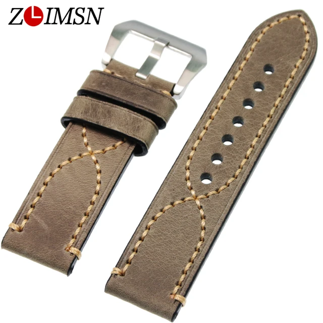 | [해외]ZLIMSN 남성 여성 시계 밴드 26 미리메터 24 미리메터 22 미리메터 20 미리메터 두꺼운 가죽 시계 줄 녹색 브라운 그레이 금속 버클 relogio masculino B18 |