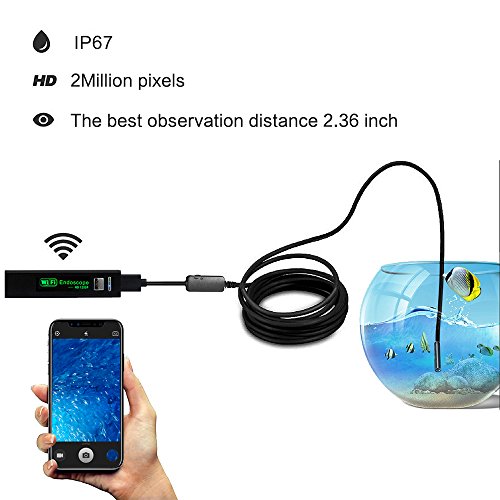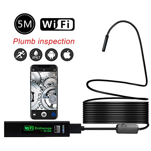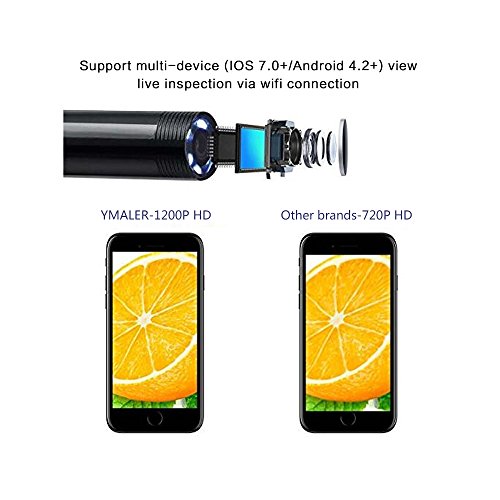 Yimaler 16.5FT Wireless Endoscope WIFI Borescope Inspection IP68 Waterproof 1200P HD Camera Semi-rigid Snake Cable for IOS Android smart phone iphone Windows PC MAC-Black