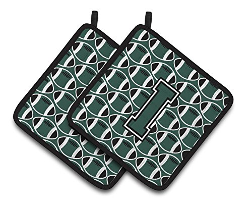 Caroline's Treasures Letter I Football green & White Pair of Pot Holders CJ1071-IPTHD, 7.5HX7.5W, Multicolor